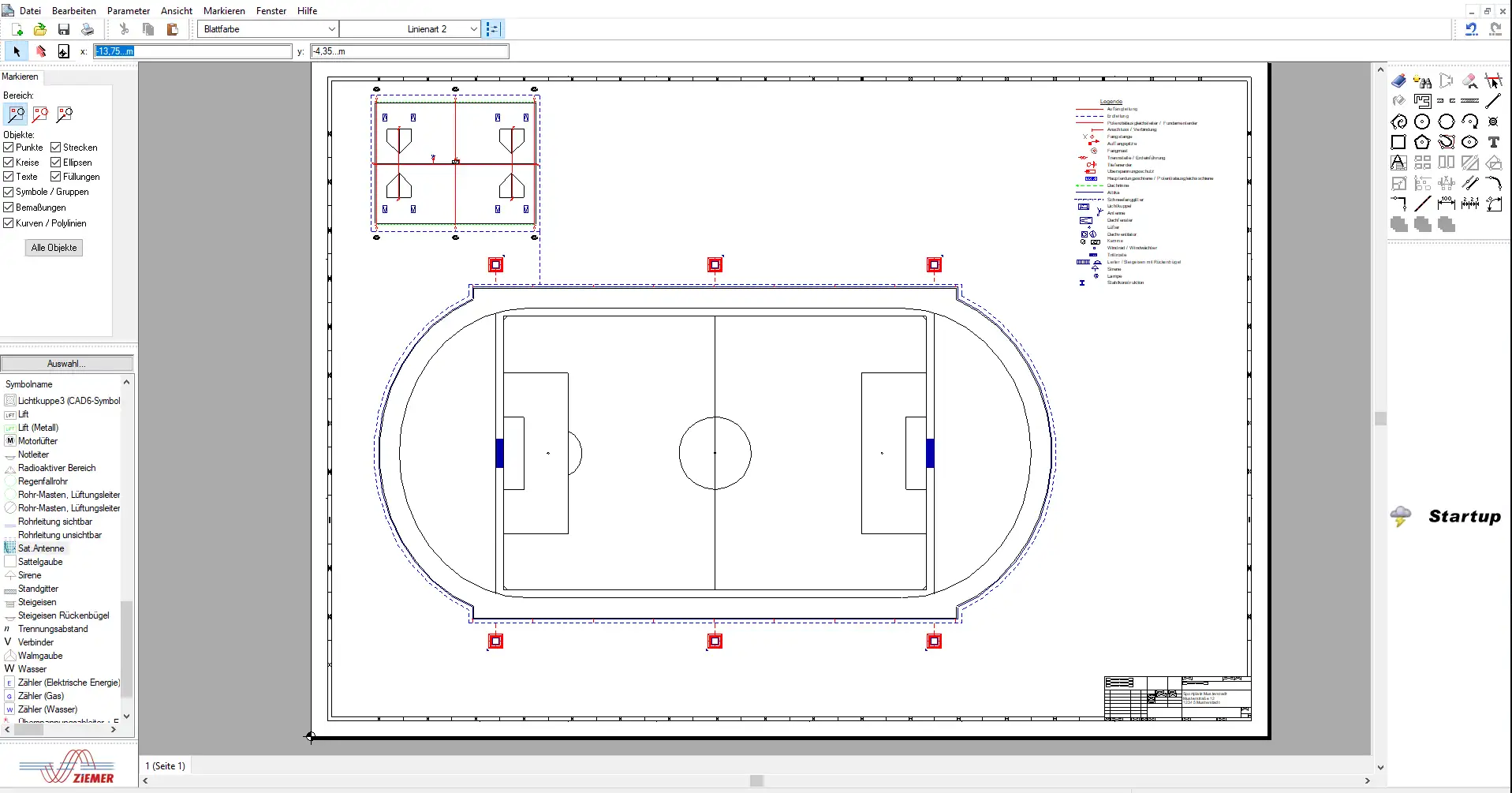 Auf dieser Grundlage entsteht ein vollständiges Schutzkonzept mit CAD-Planung, in dem alle Fangeinrichtungen, Ableitungen und Erdungsanschlüsse exakt dargestellt sind.